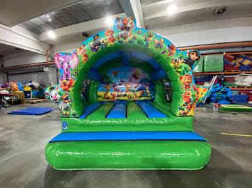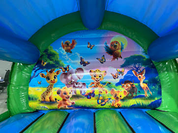 A gorgeous jungle bouncy castle featuring all their favourite animals