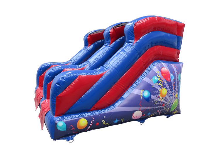 The mini celebration slide is crafted in blue and red to appeal to both boys and girls, and has a vibrant celebration theme on the sides, featuring balloons and streamers, to put everyone in the party mood. Pair it with our 13ft platform celebration slide and you’ll have something for everyone, or match it with the celebration assault course for a dynamic day of action and adventure.